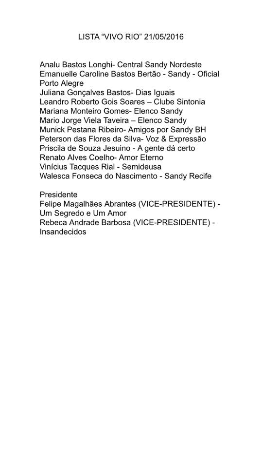 Confira a lista de sorteados para o camarim no Vivo Rio (21/05)